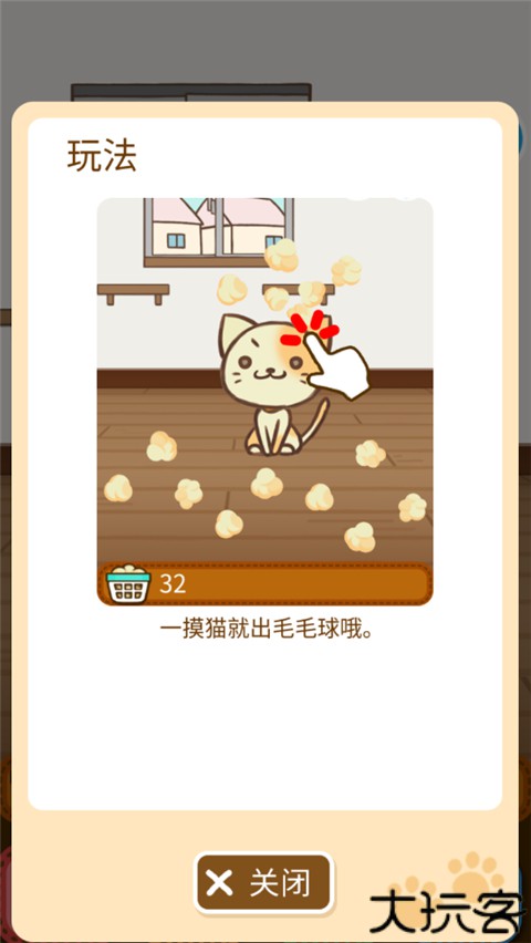 1、轻点猫咪身体即可生成绒毛球,用于收集用途。