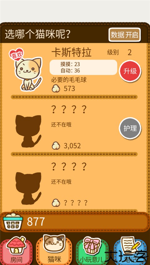3、毛球可提升猫等级,达标后可解锁新猫种。