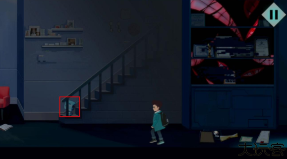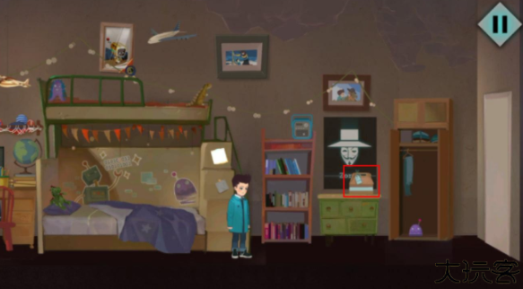 6、剧情结束后推开椅子,查看墙面画框并点击,得到第三件线索。