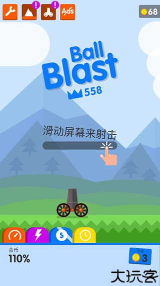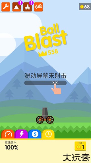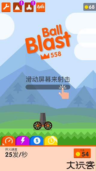 1、在游戏中,玩家消灭小球会获得金币,金币达到一定的数量就可以升级开火的速度,这里以每秒几发子弹来计算的,大炮级别越高,开火的速度就越快,在游戏中更是容易快速消灭小球。