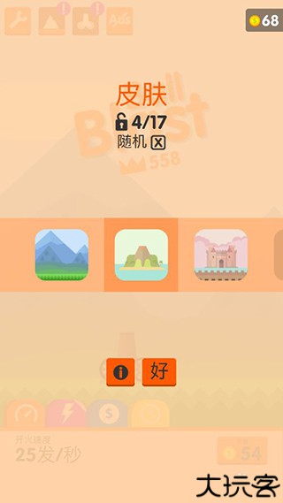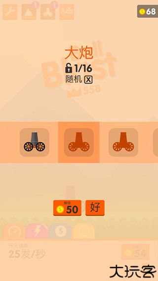 6、接下来就是大炮的外观,这个也是可以解锁不同种类的大炮,也是需要达成一定的条件,然后也要用金币来换取,这个只有努力过关,然后积累金币才可以的。