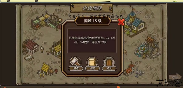 5、当玩家进入公会地图,公会有20级的宝箱物品加成,可以增加玩家在未来玩游戏后的代币奖励。