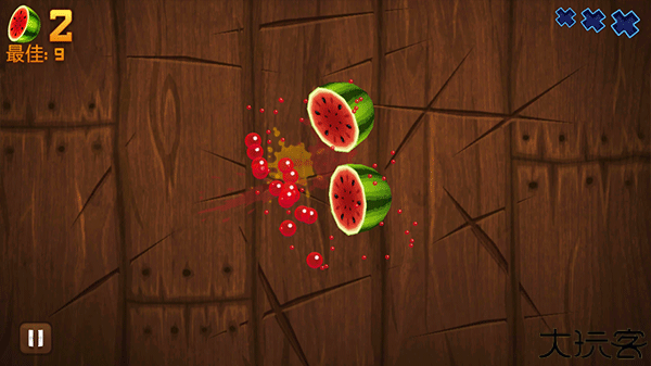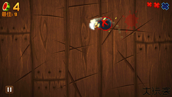 3、滑动手指切开水果,避开炸弹获取分数和连击奖励。