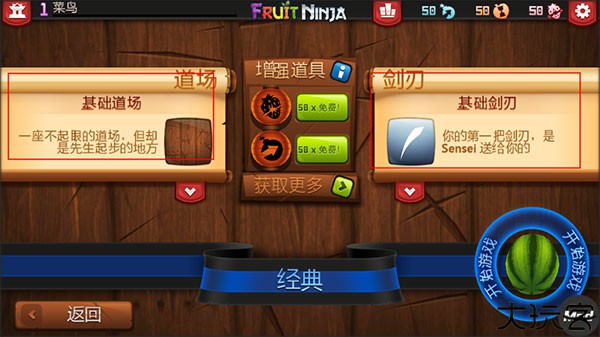 2、开始前可选择增强道具,然后点击开始体验切水果乐趣。