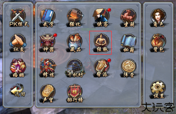 2、角色达到54级后解锁经脉系统,点击角色头像,点击经脉图标。