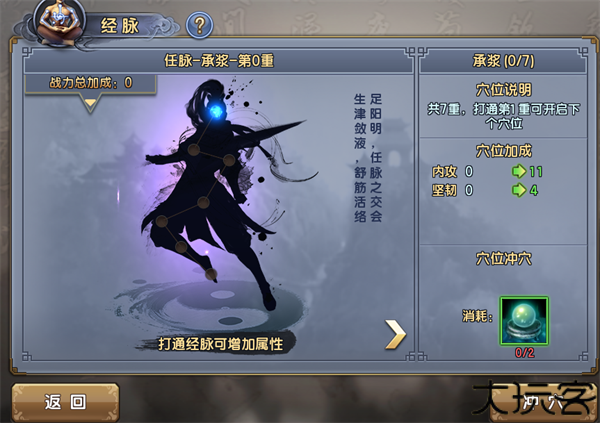 3、每个脉路拥有多个穴位,打通一个穴位,就能获得属性加成。