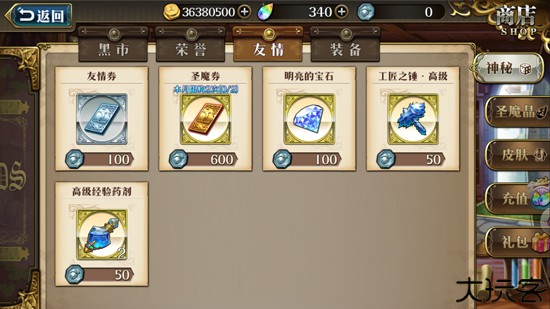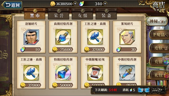 可以购买到与养成相关的道具,可花费少量圣魔晶购买英雄碎片。