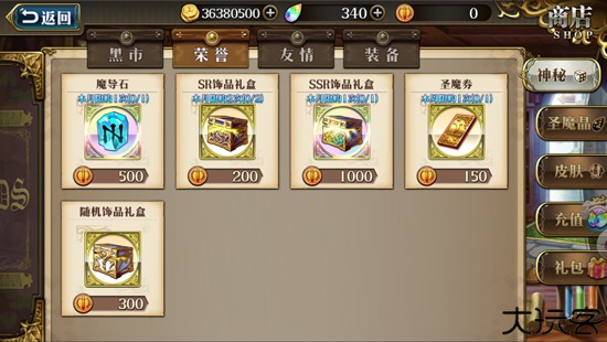 主要购买金币和圣魔券,需要花费圣魔晶购买。