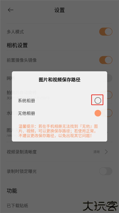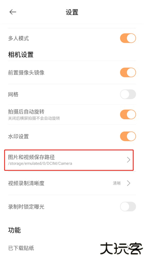 3、在相机设置中修改图片及视频保存路径,便于导出。
