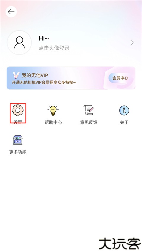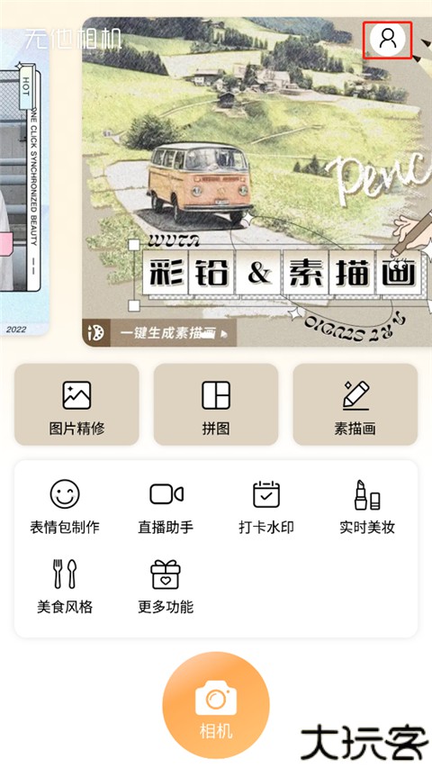 1、打开无他相机首页,点右上角“我的”进入账户区域。