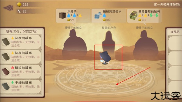 3、将物品按照配方拖动到魔法阵上,顺序无关紧要,物品放好后不断点击魔法阵就可以开始制作。