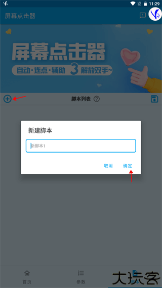 2、如果用户想新建脚本,在脚本列表界面点击带有“+”符号的按钮可以新增一个脚本。