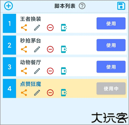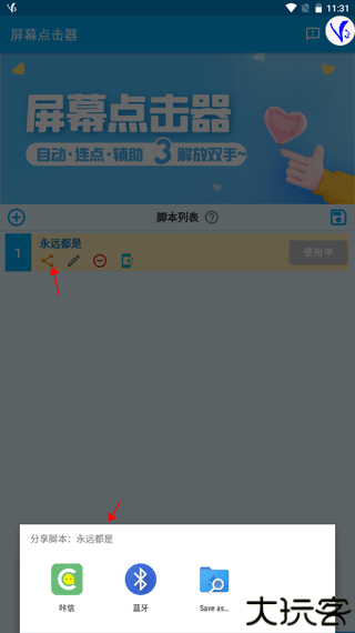 6、用户可以在脚本列表界面点击分享按钮,进而分享对应脚本给其他用户。