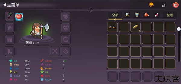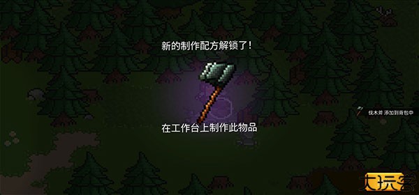 5、背包中选择工具装备后,即可进行伐木等行动。