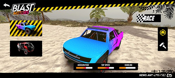 安装后点击首页“to game”,进入车辆调整界面并设置外观。