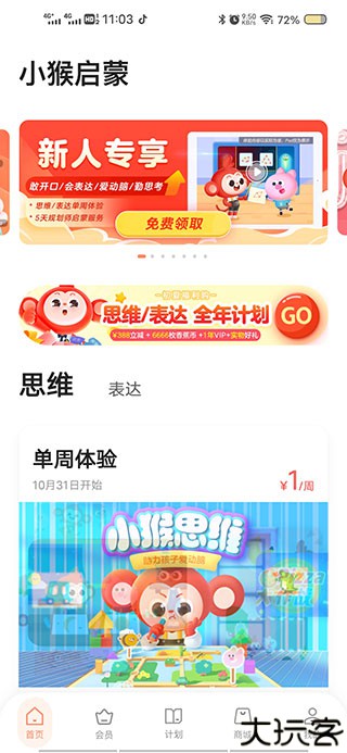 2、可依孩子学习进度选择思维、表达等类别的课程模块。