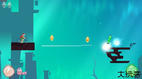 1、玩家通过绘画出合适的路线,驱动单车收集沿途的梦想碎片,奔向远方的世界入口。