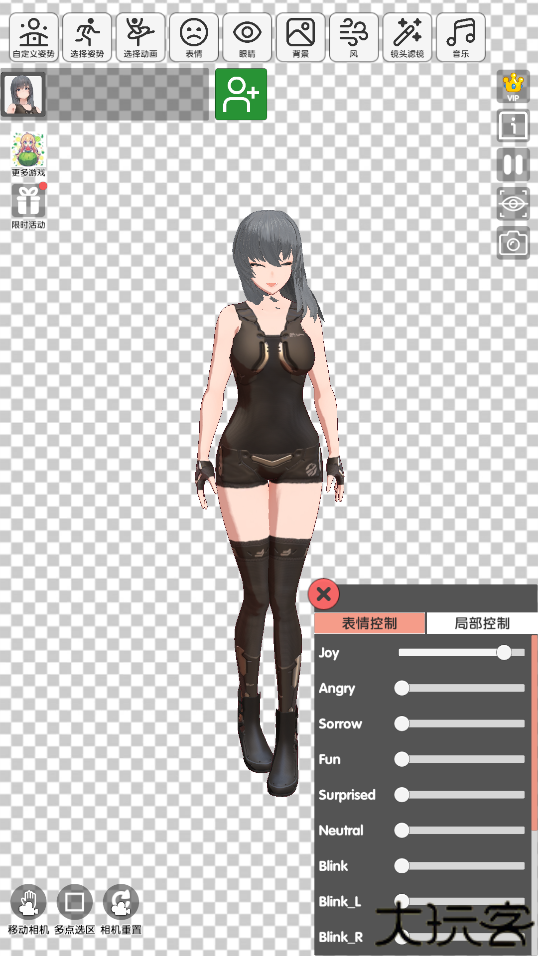 2、可以通过调节对方的姿势、表情、眼睛动作等来打造自己心目中的动漫形象。
