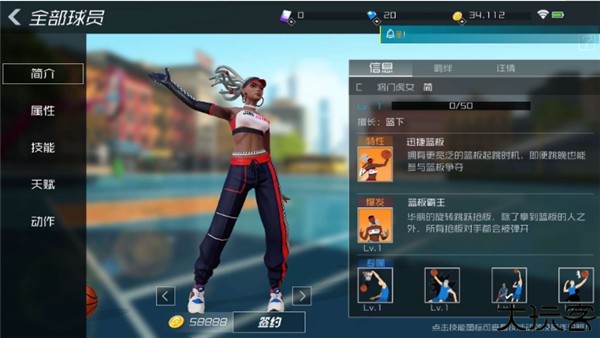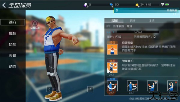 扣篮时优先触发技能扣篮且扣篮更容易撞开周围的盖帽对手。