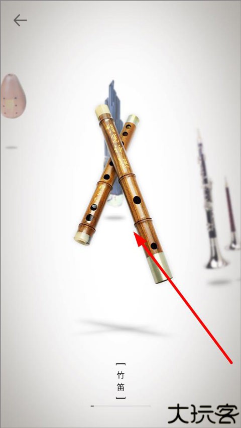 2、点击打开调音器后,调音器中有竹笛、萧、唢呐、笙、埙、排箫、十二孔陶笛、三管陶笛等乐器,点击竹笛开始校对。
