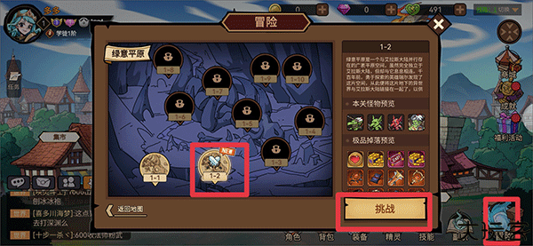 1、进入冒险选章节后点击挑战,正式踏入战斗旅程。