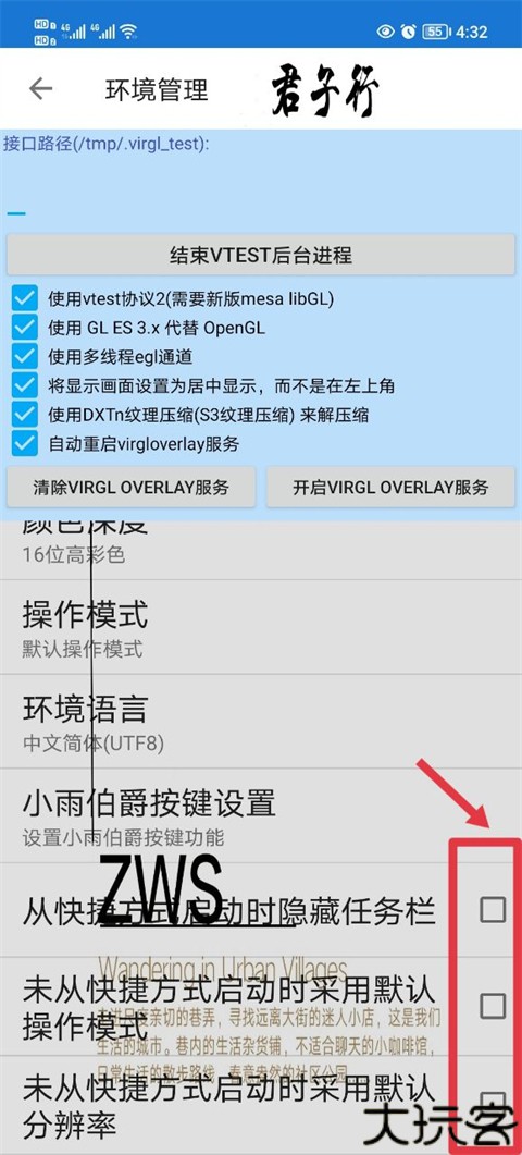 4、玩家可以自由设置操作模式等,将下图中的框框全部勾选上。