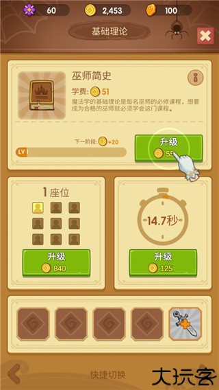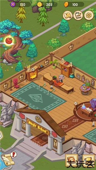 通过获得金币不断扩建课程与建筑设施,维持运营节奏。