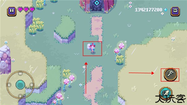 2、左侧虚拟摇杆操控角色方向,自由探索各个区域。