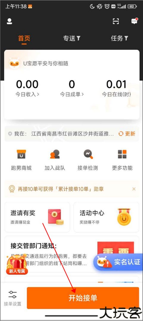 2、然后系统软件会向你推送即时订单信息的语音提示,这时候必须点一下抢单按键开展接单。