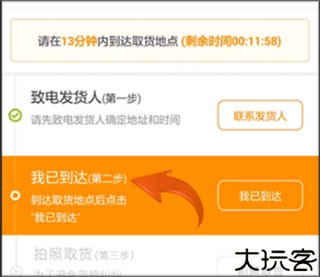 3、抵达提货详细地址后,点一下网页页面中的“我已抵达”。