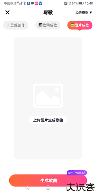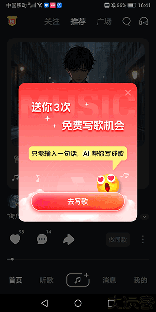 1、首次登录应用,即可免费试用AI写歌功能,快速进入创作流程。