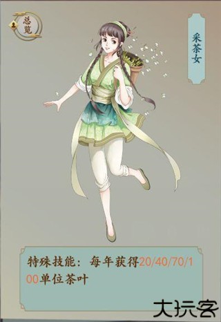 采茶女定期送茶,前期助力,中期后作用趋弱。