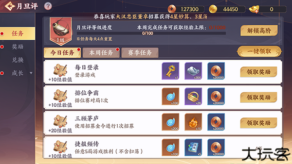 4、月旦评:完成指定挑战获取海量金币与养成素材。