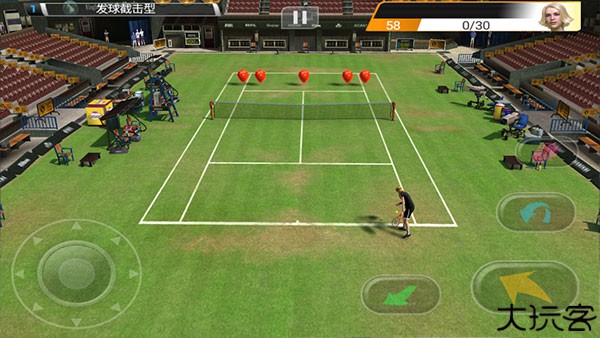 3、对方发球后,左下角的按钮用来控制角色迎球方向。