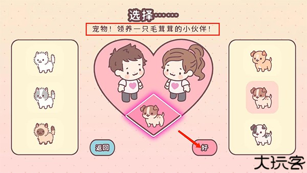 3、最后,玩家需要在各种毛茸茸的宠物中选择一只进行领养。