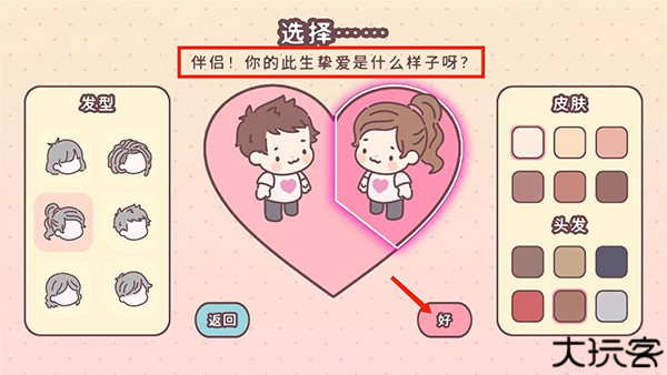 2、随后,玩家可以再为自己的伴侣进行DIY设计,选择好同样点击【好】选项。