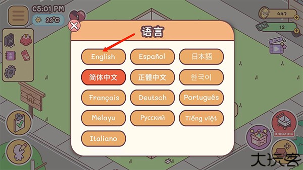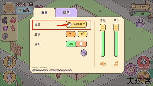2、进入设置界面后,玩家要选择语言栏中的【简体中文】选项。