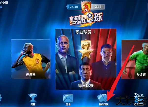 1、进入梦想足球九游版主界面,点击下方我的球队。