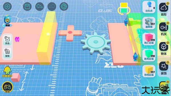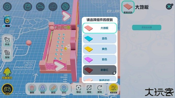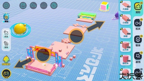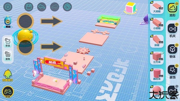 【地形组件】是构成关卡地图的基本组件,通过单指拖拽将地形组件放置在场景中,通过