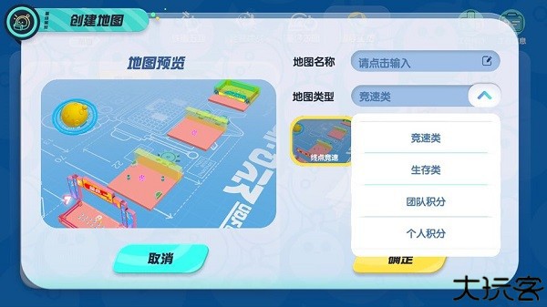 ▲地图类型:分类下可以选择各种模板,包含竞速赛、生存赛、积分赛等模式,操作简单,不怕无从下手!