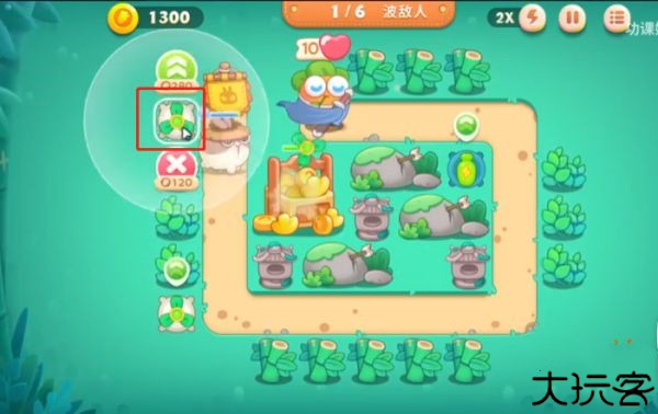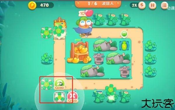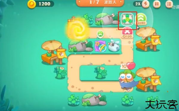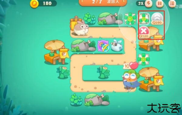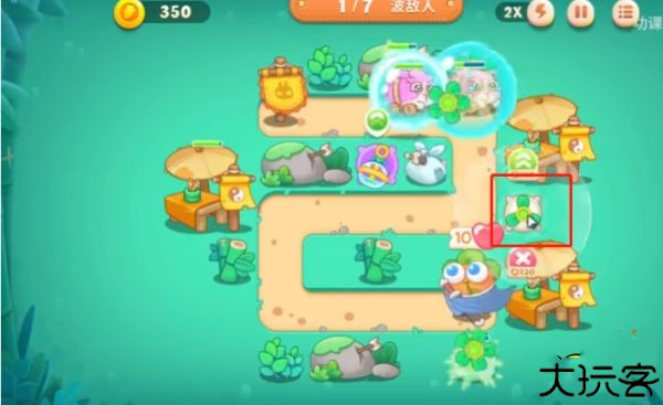 1、首先升级右边的风扇(风扇可以攻击一条直线),然后升级下面的炮台。