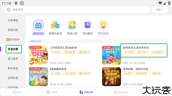 3、如果你想让小孩学习英语的话那就点击【英语启蒙】板块点击课程