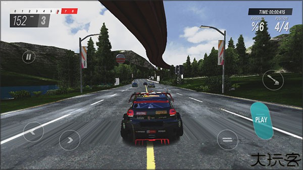 3、等待一会加载,进入游戏后,屏幕左边按键控制赛车左右移动,右边则是加速和刹车等键位。