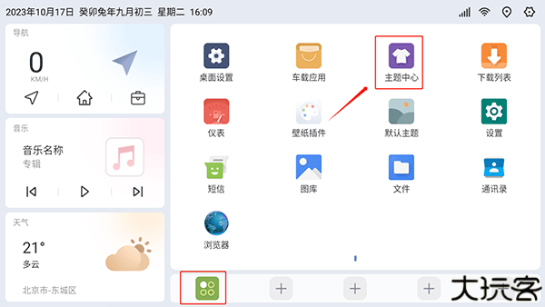 1、在首页中先点击下方的应用图标,再点击主题中心