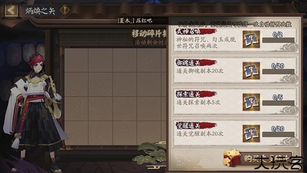 1、我们可以通过每天的活动任务,收集拼图碎片,然后对碎片进行拼图,将获得的每个碎片拼好之后将可以得到随机奖励,而完成区域拼图之后就可以获得源博雅的新皮肤炳焕之矢。