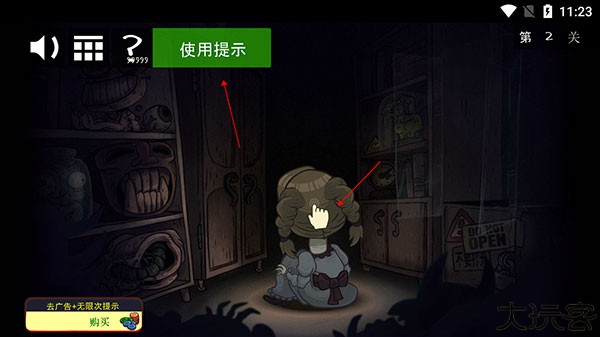 4、当然,如果在关卡中找不到线索,可以点击左上角的【使用提示】,屏幕上就会出现手势按钮,然后按照所给提示操作。