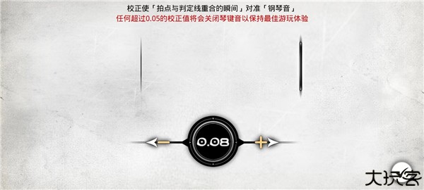 4、通过点击“-”和“+”进行校正,使拍点与判定线重合的瞬间对准钢琴音;调整完成后点击右下角的“√”;