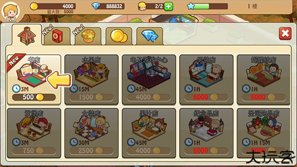1、进到游戏后,首先,让我们建设一个供顾客购物的『书店』,点击商店——选择书店即可。