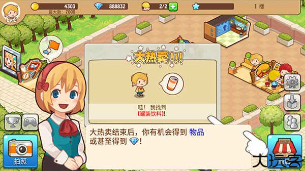 2、除此之外,要设法吸引更多可爱的顾客,举行大热卖,疯狂赚取金币。