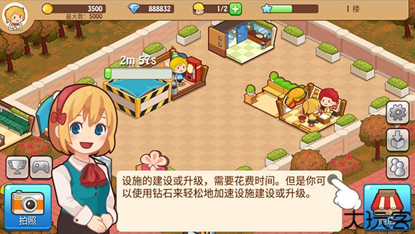 4、建造并升级各种丰富的设施以及装饰品,包括餐厅,烘培店,服装店,电子游戏中心等等